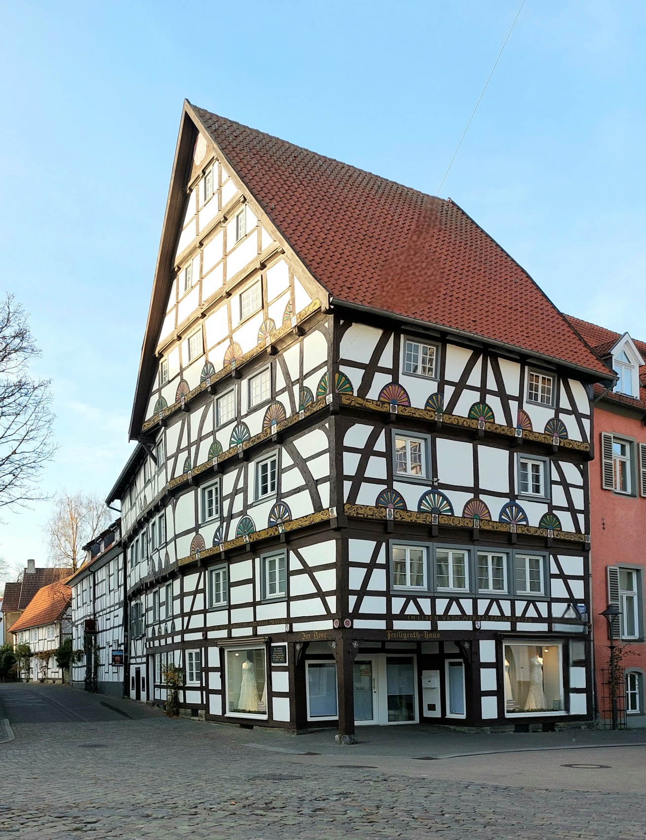 Wir gehen zur Mariengasse, danach biegen bei nächster Gelegenheit links ab, anschließend auf der Petristraße nach rechts. Auf der nächsten großen Kreuzung biegen wir vor dem Haus zur Rose nach halb rechts auf die Rosenstaße ab. Ein bemerkenswerter, gepflasterter Platz ist das hier. Das alte Kaufmannshaus ist perfekt saniert, doch weitere eindrucksvolle Häuser folgen.
